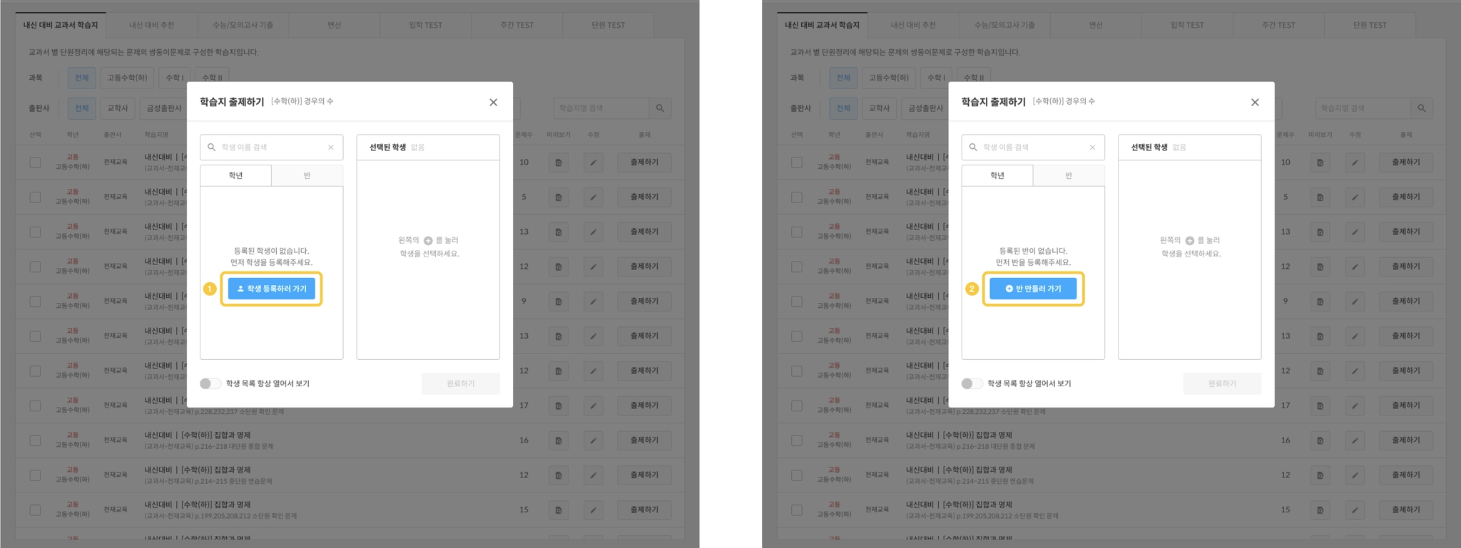 등록된 학생이 없는 경우 / 등록된 반이 없는 경우