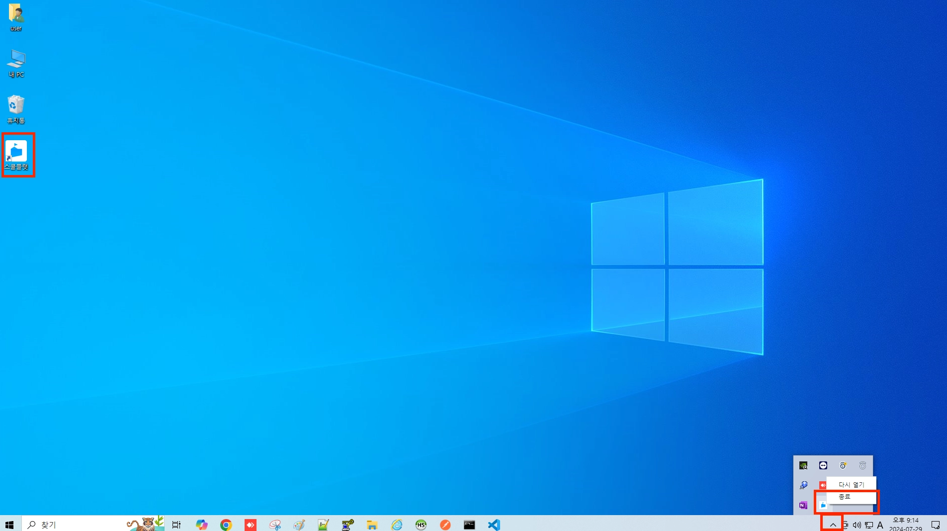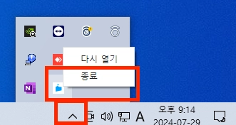 PC용 앱 종료 방법 : 우측 하단의