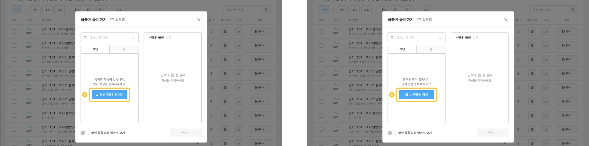 등록된 학생이 없는 경우 / 등록된 반이 없는 경우