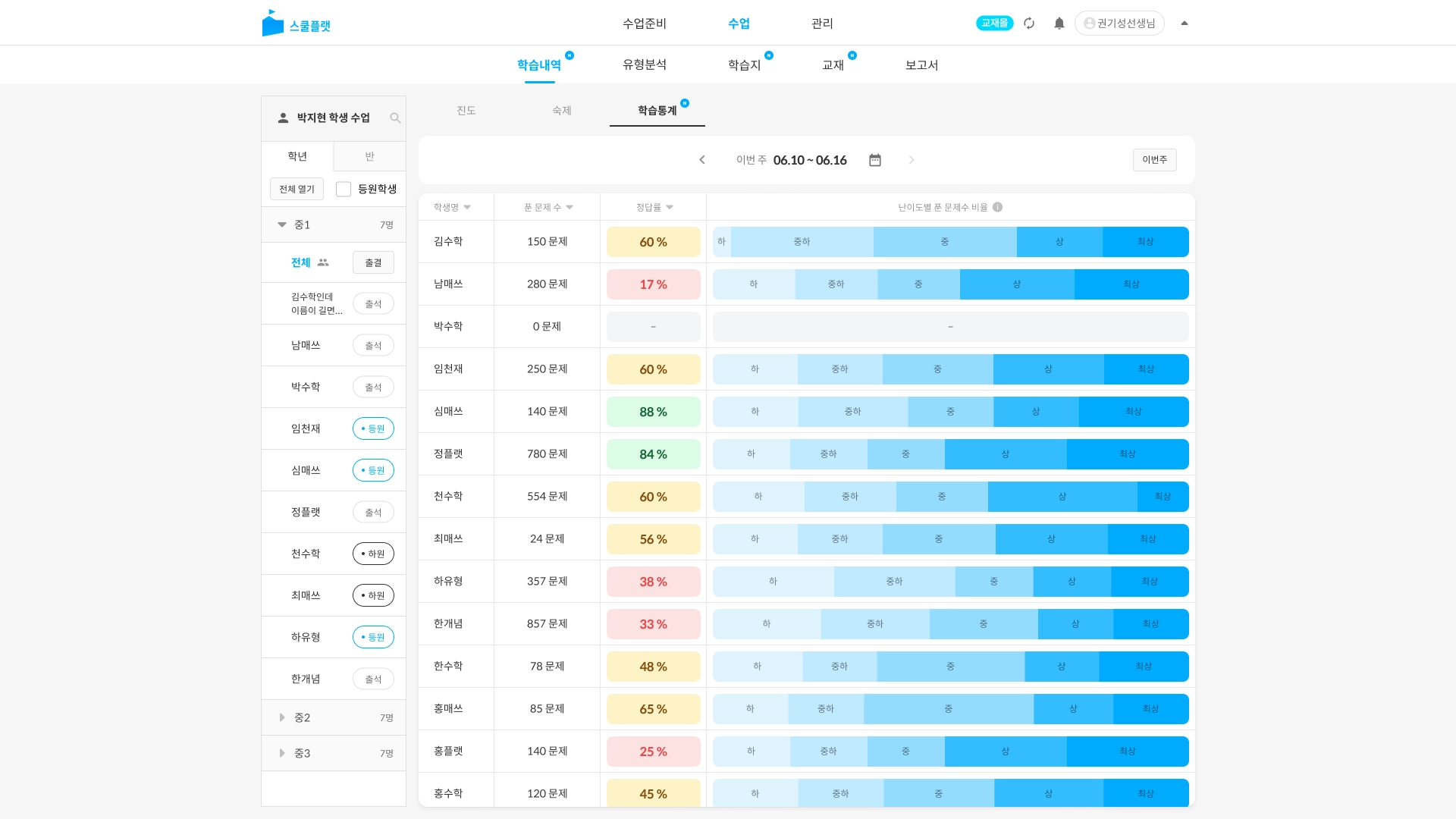 다수 학생에 대한 ‘학습 통계’를 확인할 수 있어요.
