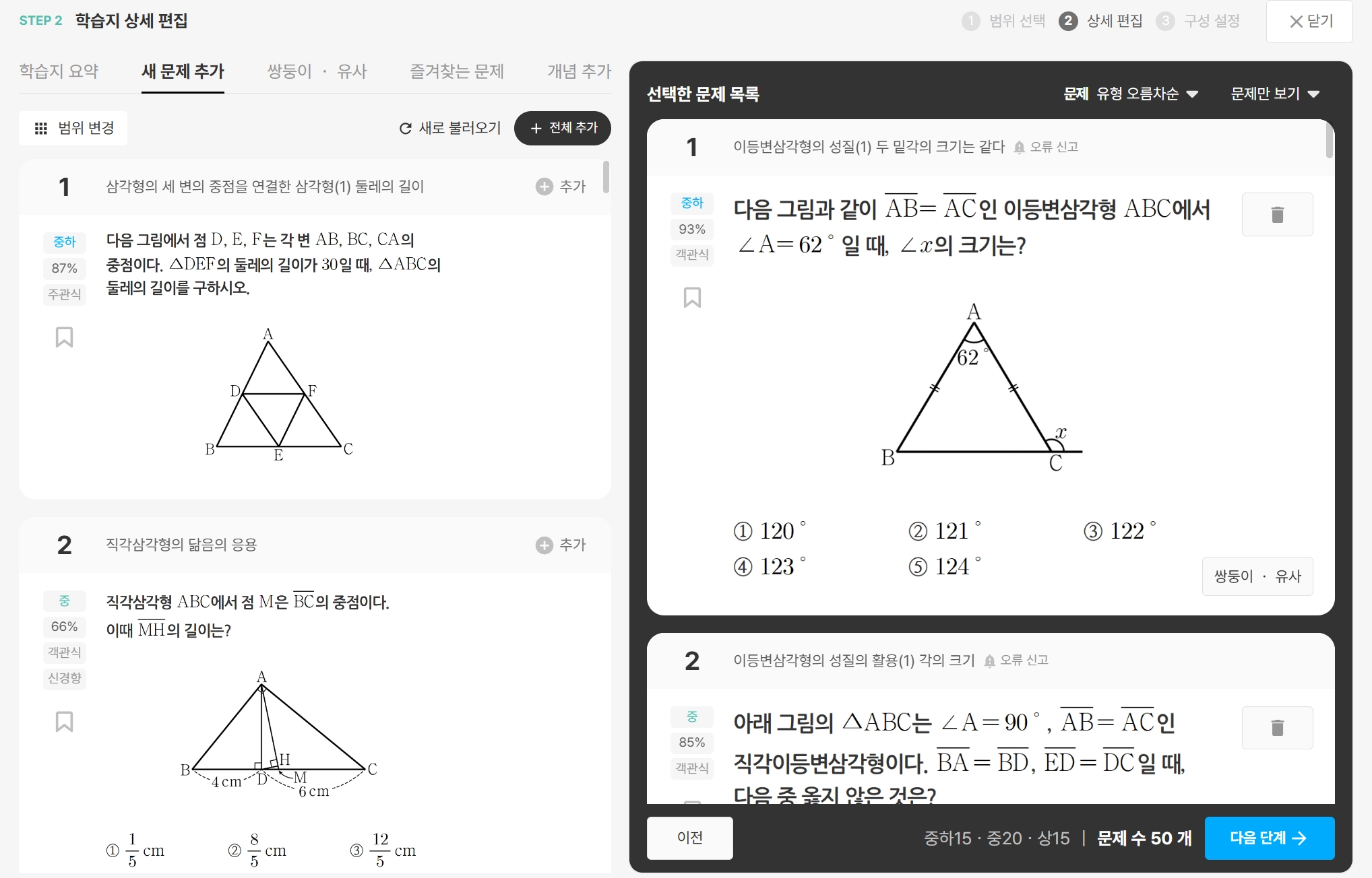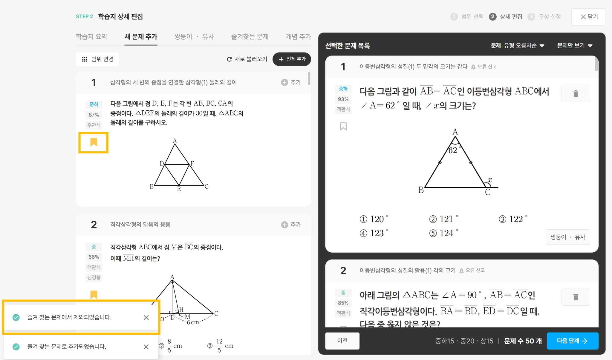 학습지 만들기 STEP 2 > 즐겨 찾는 문제 탭