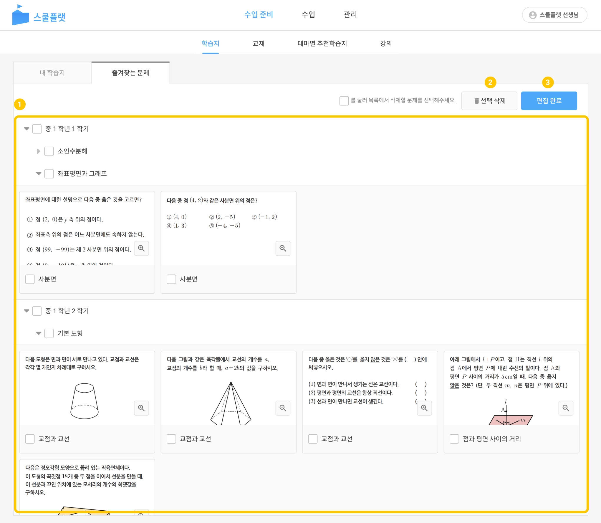 즐겨 찾기한 문제의 학년학기/과목 이름을 확인할 수 있습니다.