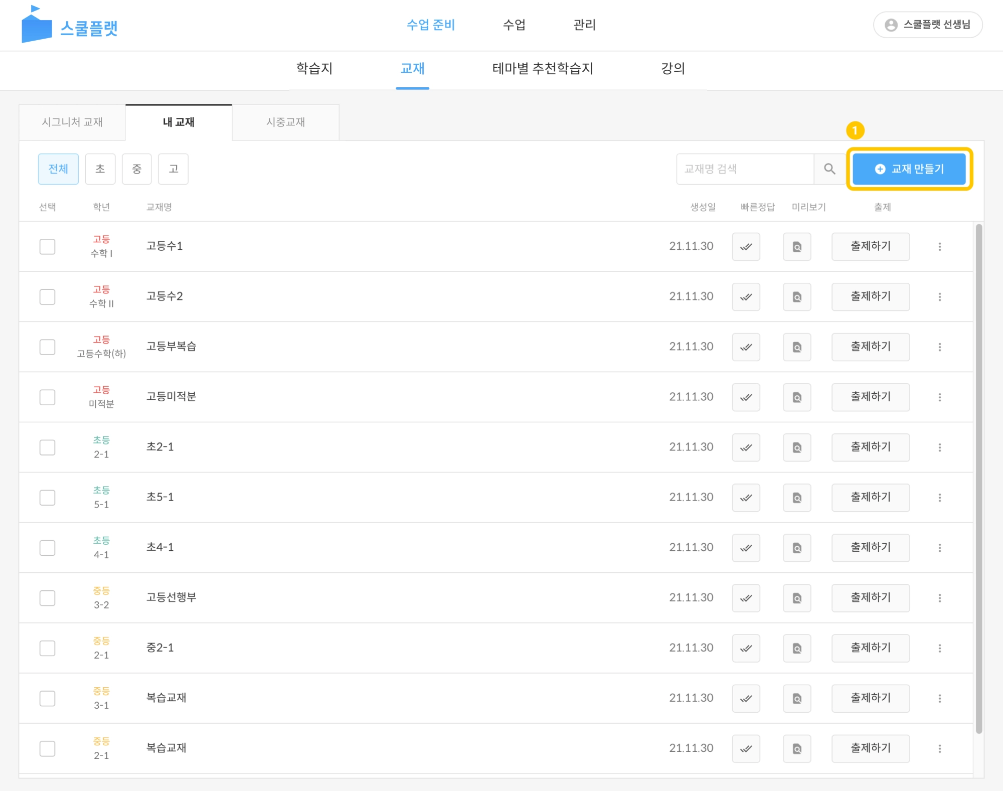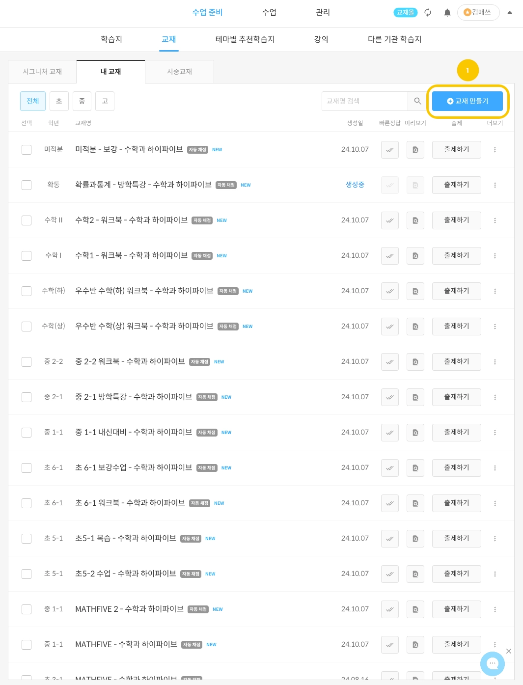 (1) 내교재 만들기 진입