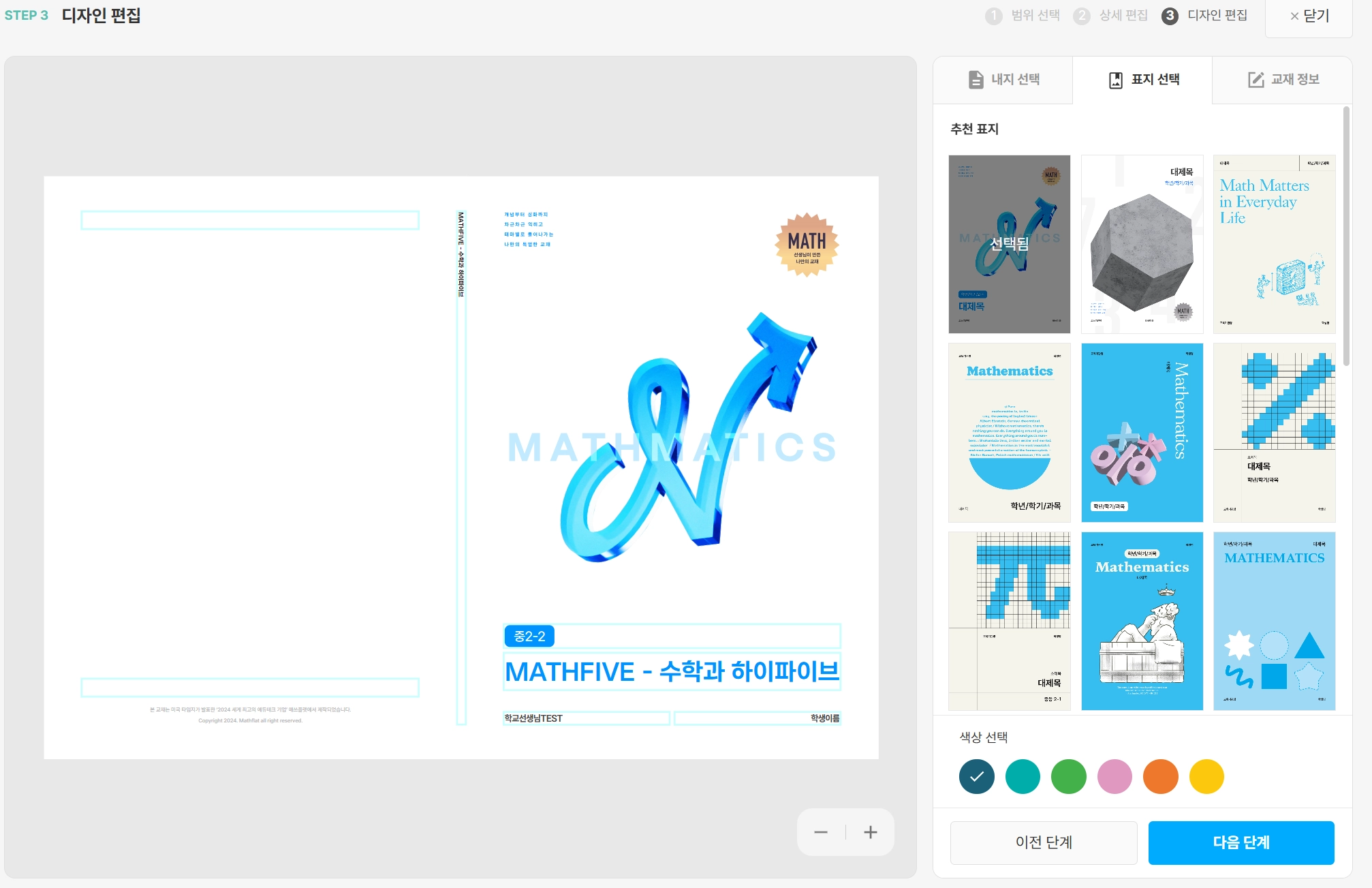 교재 표지 디자인을 설정할 수 있습니다.