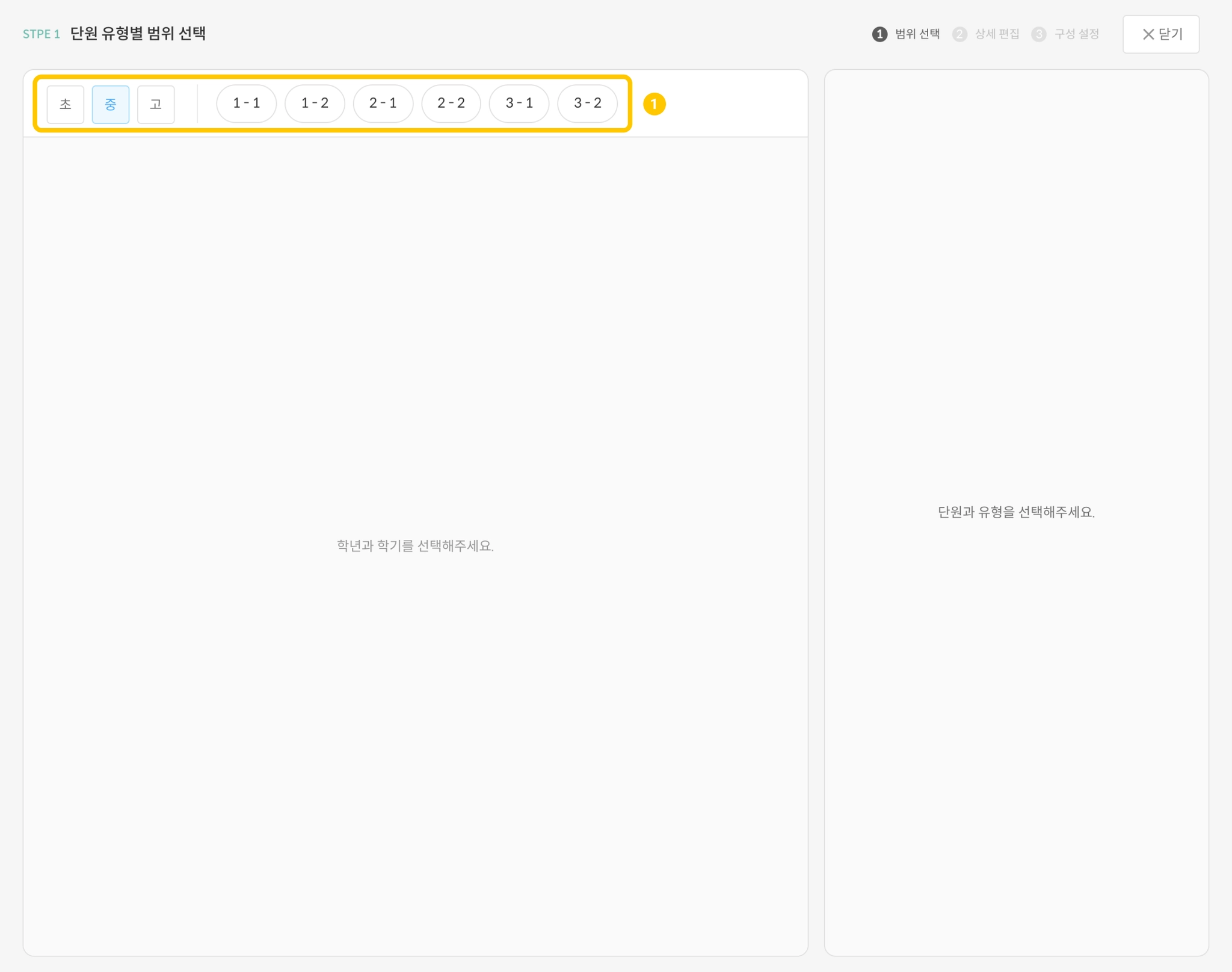 (1) 단원 유형별 범위 선택