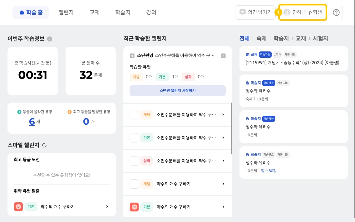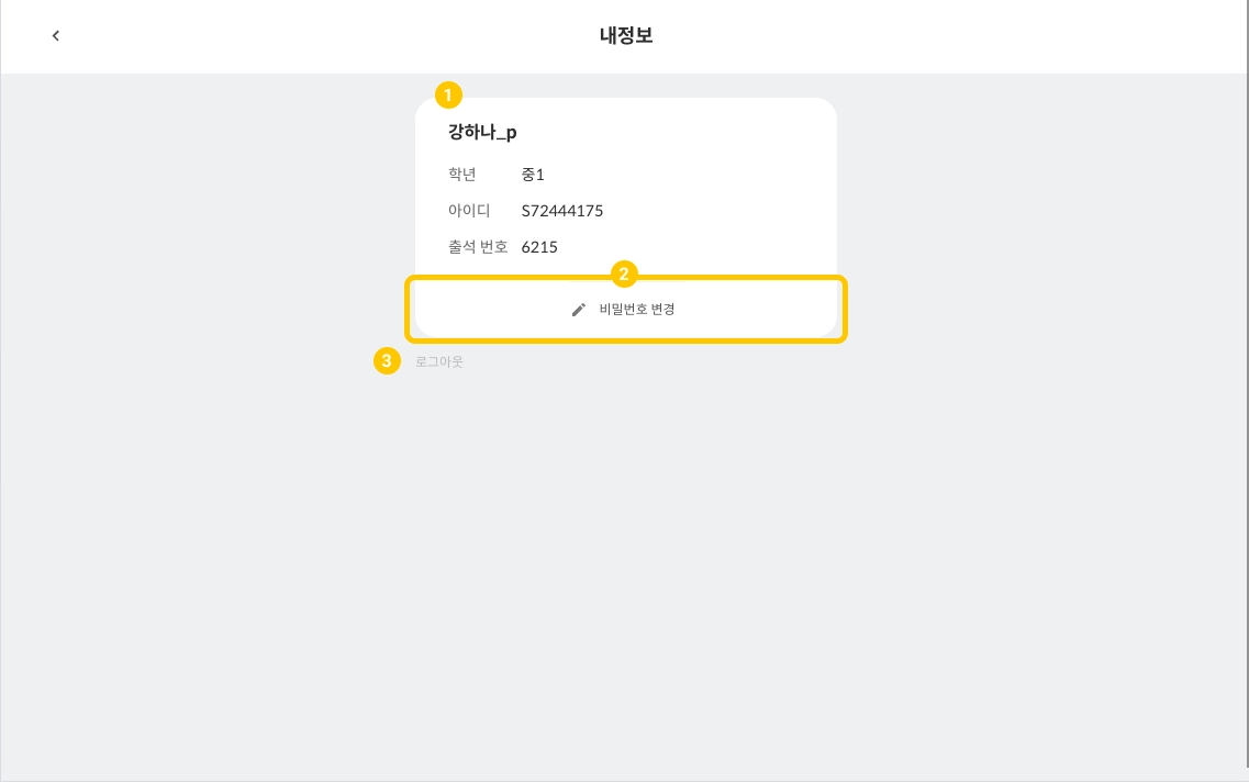 학년, 아이디, 출석 번호를 확인할 수 있습니다.