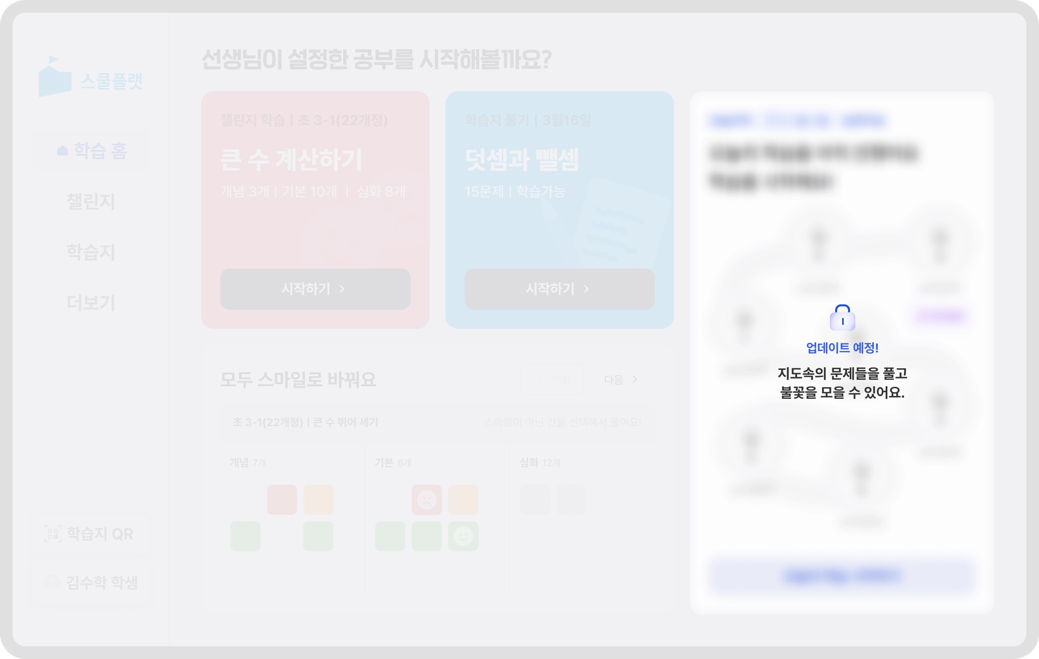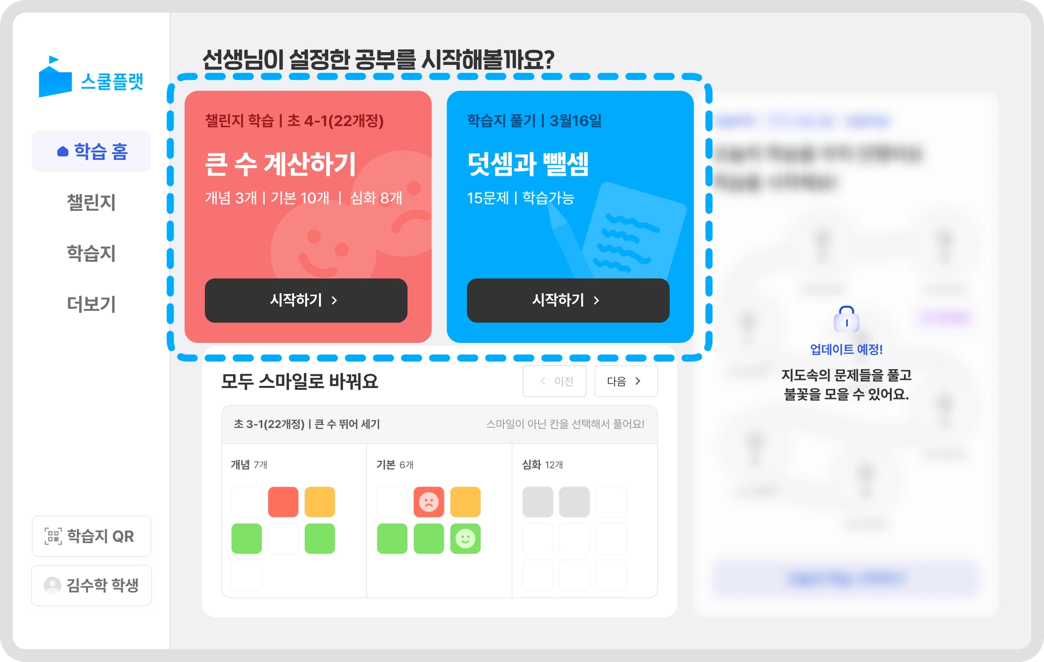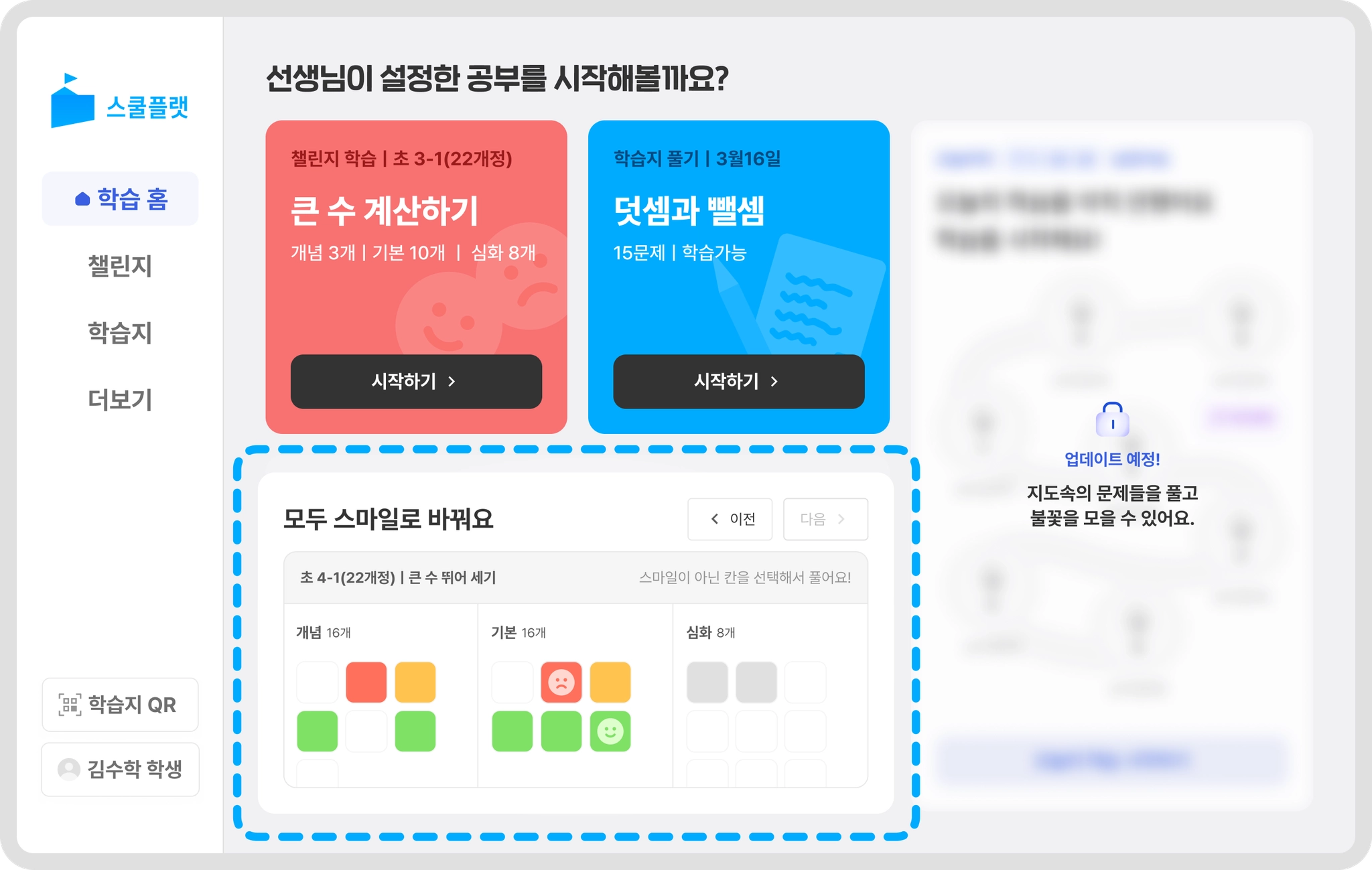 소단원을 모두 스마일로 바꾸면서 학생의 성취감을 높이고 학습의 동기가 생겨요.