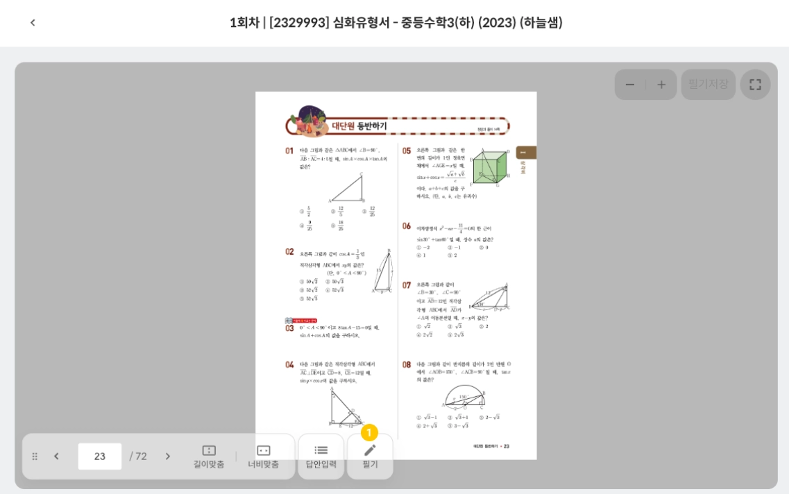 교재 페이지 뷰어로 실물 교재 없이도 수준 높은 수업을 제공하실 수 있습니다.